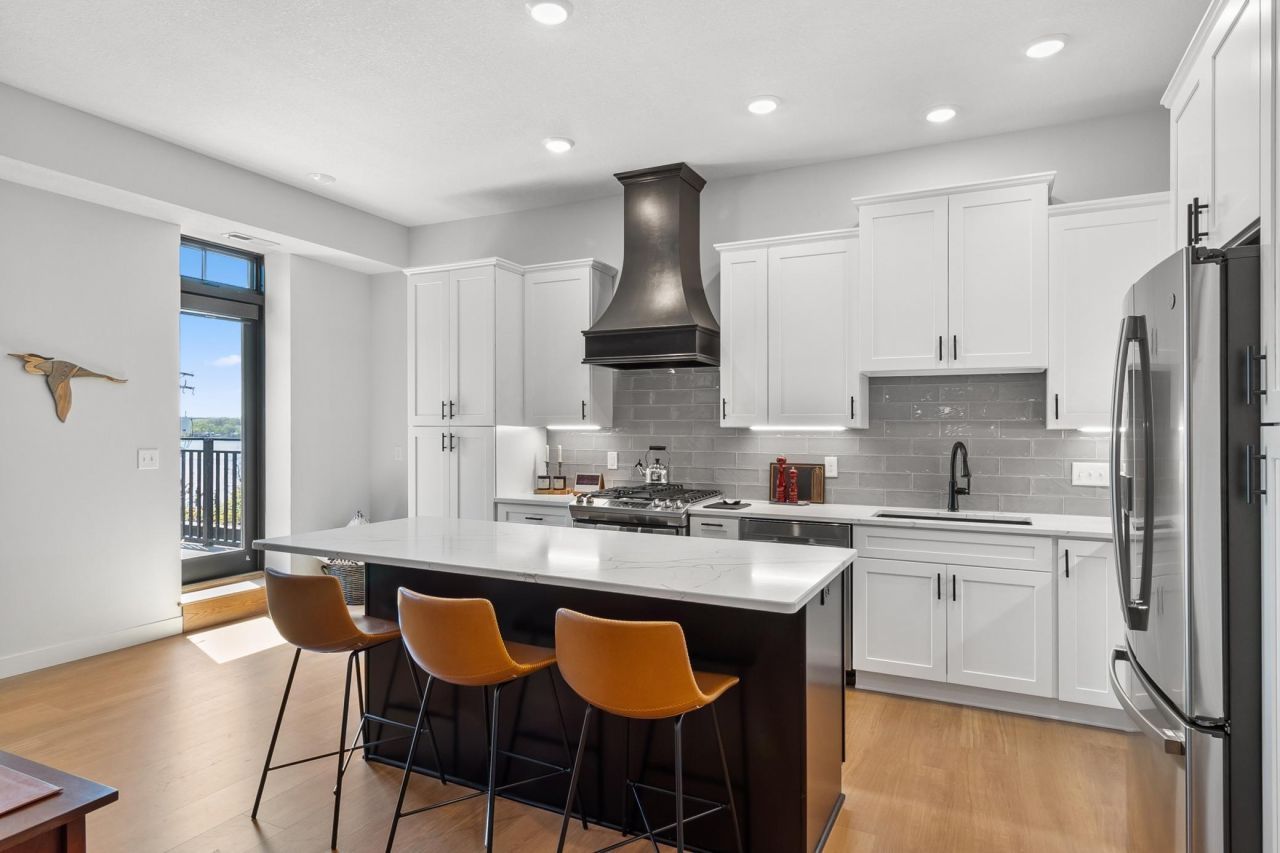 Exquisite Luxury Condominium Living in the Heart of Hudson. Prepare to be enchanted by this exceptional 3rd-floor condominium, a masterpiece of design and luxury nestled in the vibrant heart of Hudson. Overlooking the majestic St. Croix River and the charming cityscape, this residence presents a unique opportunity to embrace a lifestyle of refined elegance and unparalleled convenience. Step inside and be greeted by an abundance of natural light that fills the thoughtfully designed floor plan, creating a warm and inviting ambiance throughout. The residence boasts a seamless flow, perfect for both relaxed living and sophisticated entertaining. The gourmet kitchen is a culinary enthusiast's dream, meticulously crafted with high-end stainless steel appliances, premium hardwood cabinets, and stunning quartz countertops. Throughout the residence, exquisite luxury vinyl plank floors add a touch of classic beauty and enduring durability. Enjoy walkable access to a diverse selection of acclaimed restaurants, lush parks, and the vibrant community arts center. Immerse yourself in the local culture, explore the charming streets, and discover the many treasures that Hudson has to offer. Commuting is a breeze, with an approximate 20-minute drive to the Twin Cities. This ideal location provides the perfect balance of city accessibility and peaceful suburban living, allowing you to enjoy the best of both worlds. Relax and unwind on your private balcony with retractable awning, soaking in the picturesque views of the St. Croix River and the surrounding landscape. For a grander perspective, take advantage of the shared rooftop deck, the ultimate space for entertaining guests or simply enjoying the serenity of your surroundings. The Birkmose, meticulously built by the renowned Clearview Construction, is a testament to quality and craftsmanship. This impeccably maintained condominium is ready to welcome its next discerning owner. This is an exceptional opportunity to own a piece of prime real estate in a highly sought-after location. Don't miss your chance to experience the epitome of luxury living in the heart of Hudson.